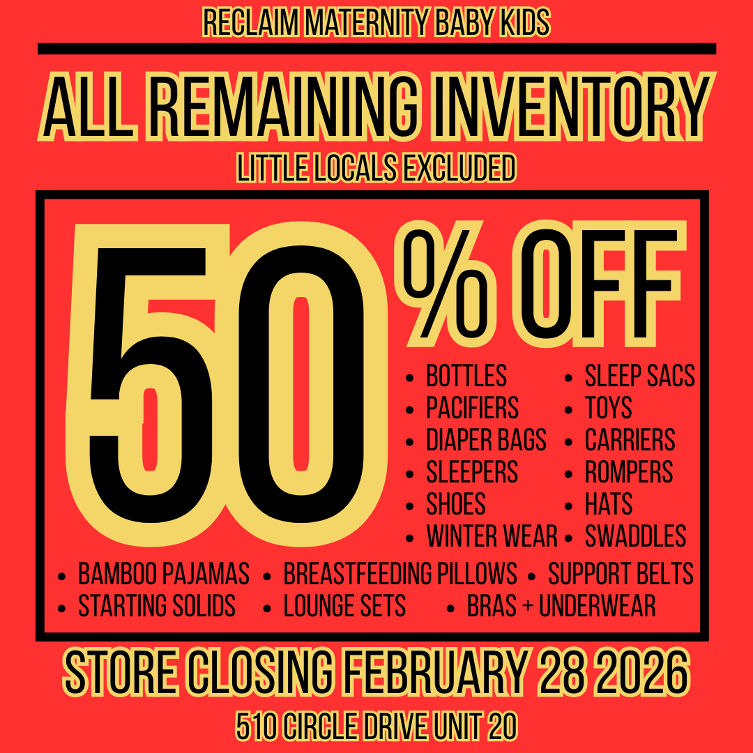 After a lot of thought, a lot of tears, and a lot of trying to problem-solve our way out of impossible circumstances, we’ve made the decision to close Reclaim Maternity Baby Kids. Our final day open will be February 28, 2026.
