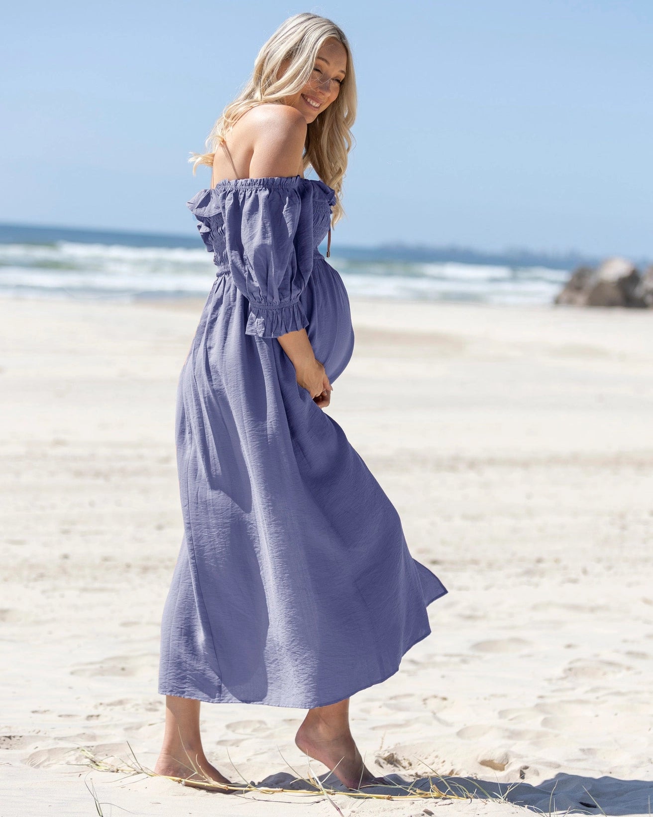 The Amber Maternity Baby Shower Dress is the perfect blend of style and practicality, designed to make you feel radiant for any occasion. From baby showers to holidays or nursing-friendly outings, this dress adapts beautifully to your needs. Featuring an elastic neckline for easy nursing access, you can wear it off-shoulder or on-shoulder for versatile looks.