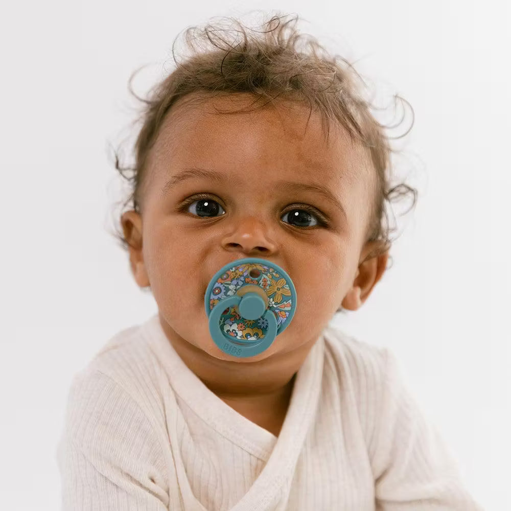 The BIBS pacifier has been a classic for moms and babies for over 30 years. Due to its naturally safe and durable rubber material, the BIBS pacifier has been trusted by moms worldwide for decades. Teach your baby to self-soothe with this pacifier that mimic's mom's breast in both comfort and feet. The BIBS pacifier is 100% free from BPA, PVC, and phthalates. Designed and manufactured in Denmark. Their classic appearance captures a look that's both timeless and elegant. Available in a 2 pack in a variety of colors - collect them all to ensure your baby's look is coordinated!