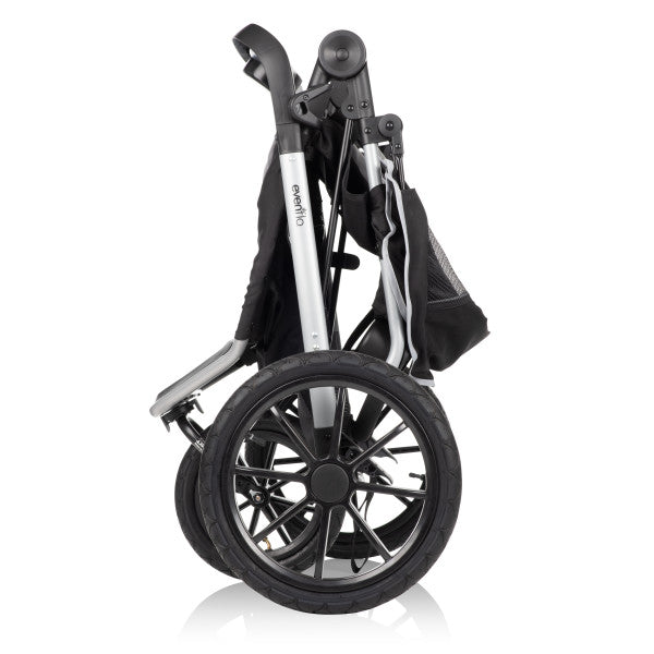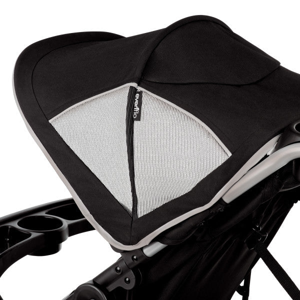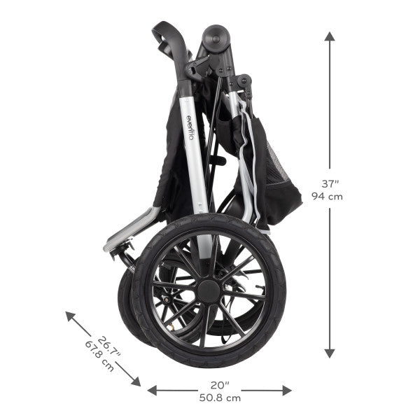 Gear up for an active lifestyle with a stroller that delivers the ultimate in lightweight mobility — the Evenflo® Victory™ Plus Jogger Travel System. The jogging stroller weighs just 23 lb, while the LiteMax™ Infant Car Seat is a super light 7.4 lb, making this an ideal travel system for jogging, walking, everyday errands and travel. Whether you hit the roads or trails, the Victory Jogger Plus Travel System delivers a smooth ride for you and your little passenger, thanks to enhanced suspension and large pneumatic tires. Designed to meet your on-the-go needs, it features a roomy storage basket, plus 2 deep parent cupholders and 2 toddler cupholders with a snack tray. When your workout is done, simply lift the in-seat strap, while pulling on the in-seat ring simultaneously, to fold the stroller into a compact size for easy storage. Whether you’re training for a 5k or just want to get some extra steps in, the Victory Plus Jogger Travel System is a big win for parents who love to get out there and enjoy the fresh air with baby in tow. At Evenflo, we go above and beyond government standards to create car seats and bases that are safe. The Evenflo LiteMax Infant Car Seat is side impact and rollover tested, as well as tested for structural integrity at energy levels approximately 2x the federal crash standard.