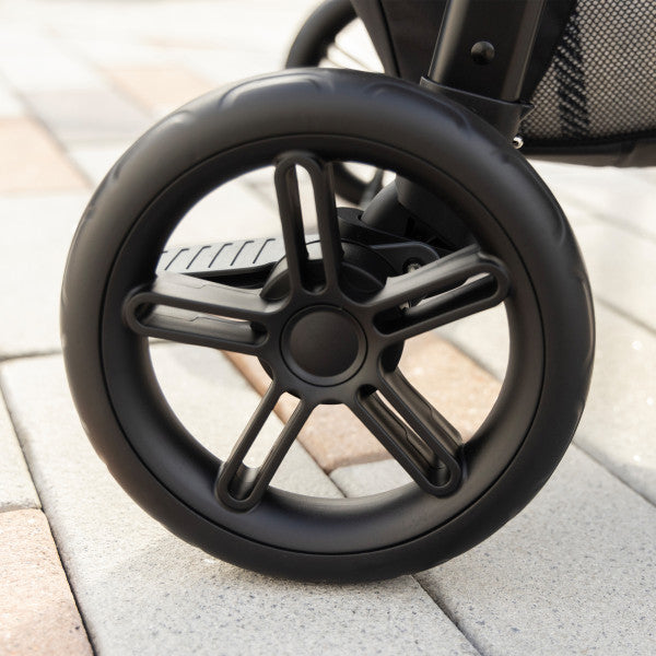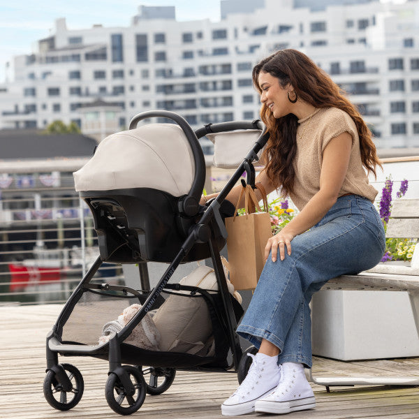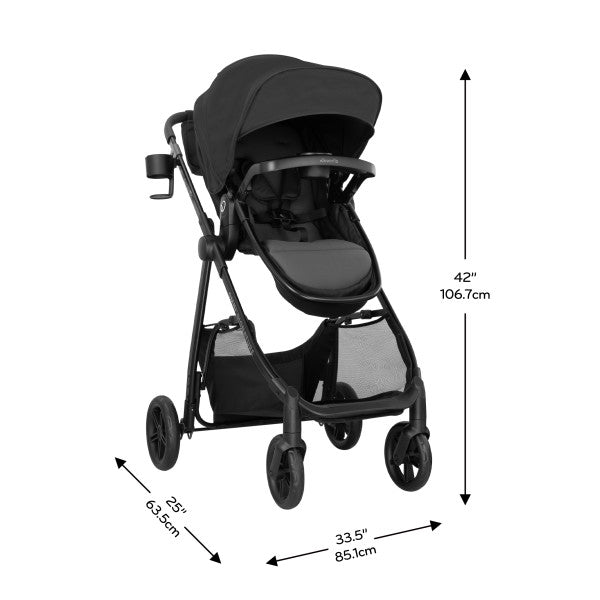 Convenience + versatility + extras! The Evenflo® Omni™ Signature Travel System with LiteMax™ Infant Car Seat combines it all in a travel system with even more modes and accessories. The stroller frame fits children up to 50 lb (or 40 in. tall) and provides 8-mode flexibility, with rear-facing or forward-facing infant, carriage and toddler modes. The infant carrier securely nests in the toddler seat, resting on the BPA-free child snack tray. The LiteMax Infant Car Seat fits kids from 3 to 30 lb (15.7 to 32 in. tall), with harness covers and a removable body pillow. The infant car seat and stroller’s extra-soft fabric help keep your little one comfortable. The high toddler seat keeps baby close while creating storage for up to 10 lb of essentials below. Converts from toddler mode to lay-flat carriage mode, so babies under 6 months old can stretch out. A large canopy with 50+ UPF helps protect against sun, while large cruiser tires let you roll with ease. Includes a handy parent organizer, dual-sided storage hook and parent cup holder. When the adventure is over, compact, self-standing fold lets you pack up quickly. At Evenflo, we go above and beyond government standards to create car seats that are safe. The LiteMax Infant Car Seat is rollover tested and temperature tested.