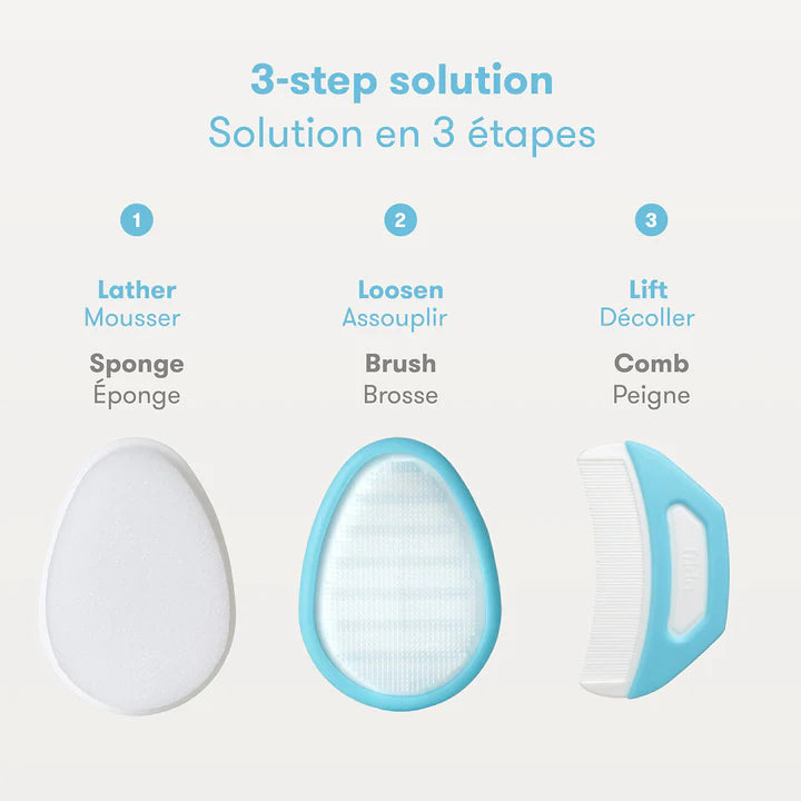 Did you know that almost 70% of babies end up with crusty cradle cap? Give flakes the brush off with our Flake Fixer - the first 3-step system specially designed to fix the flake situation. First LATHER (with sponge), then LOOSEN (with brush), and LIFT (with comb) then get back to the baby with more cradle, less cap.