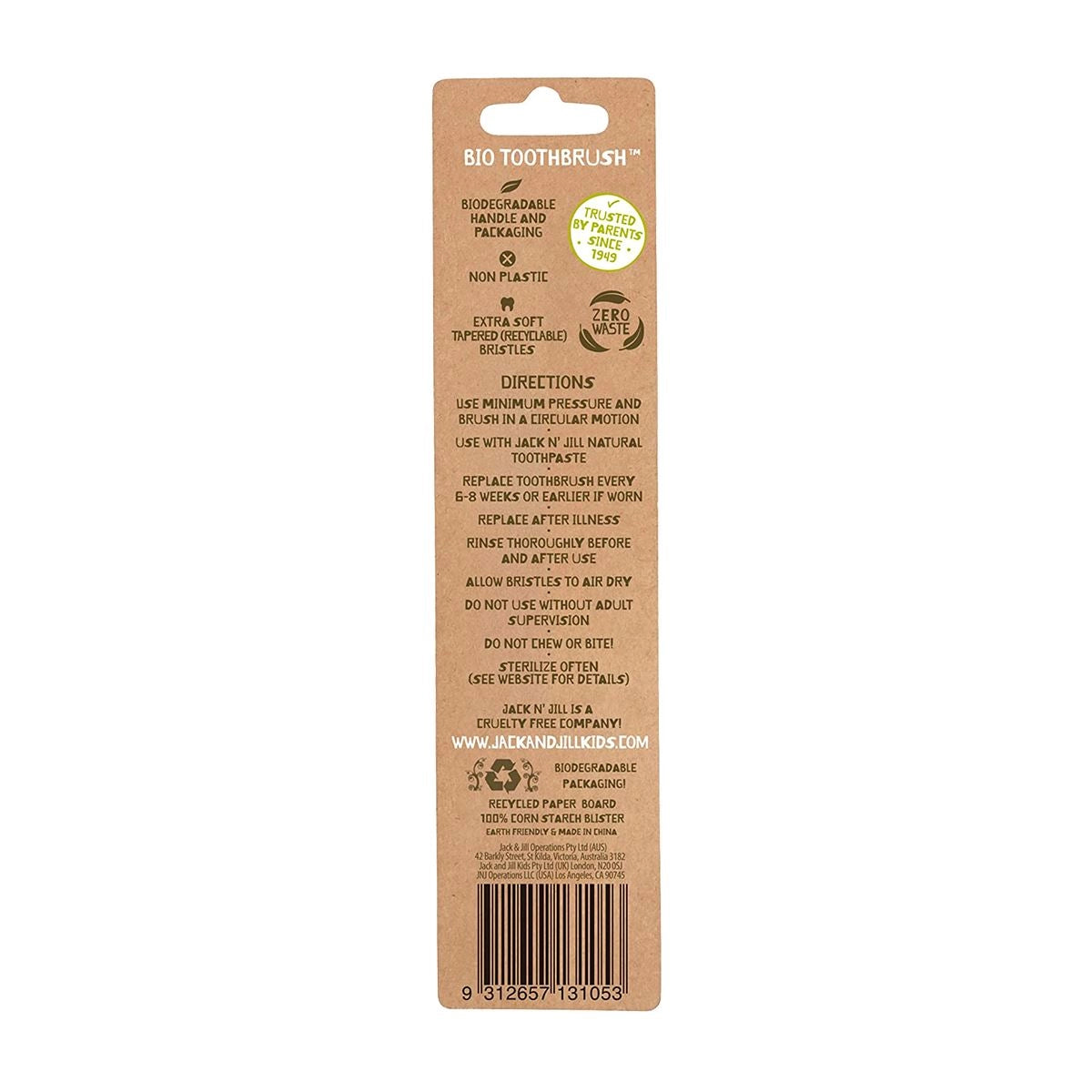 An ergonomic toothbrush made from 100% non-GMO corn starch handle, and soft round nylon bristles for a thorough clean. Don't forget that, ideally, you should replace your toothbrush every 6 to 8 weeks. The handle is 100% biodegradable, which means you can compost it and help reducing the millions of plastic brushes that end up in landfills every year. The packaging is made from corn, and is also fully biodegradable - no plastic! The bristles are fully recyclable.