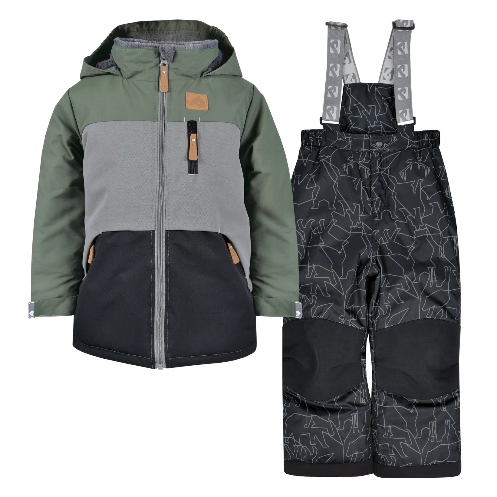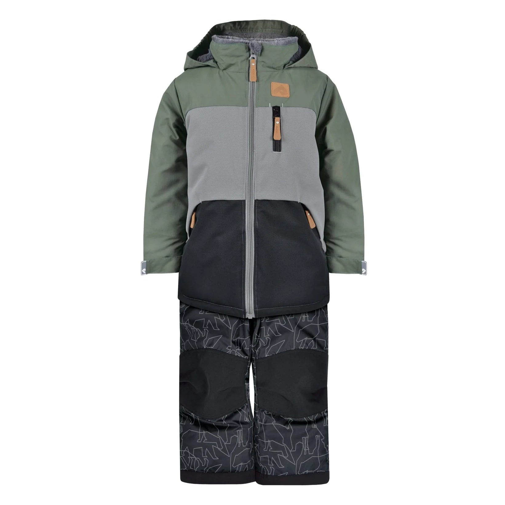 Perlimpinpin - Two Piece Kid Snowsuit - Army Black + Animals