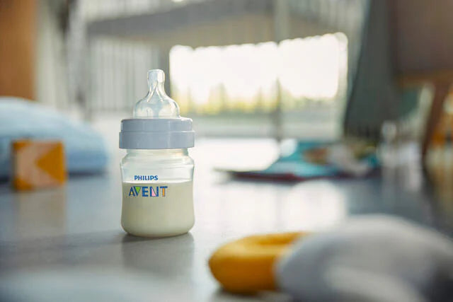 With its integrated Anti-colic valve, air is vented into the bottle and away from the baby's tummy. Our clinically proven* Anti-colic valve is designed to reduce colic and gas. Clinical studies have shown that the Philips Avent bottle reduces colic and fussing. Fussing is significantly reduced at night as babies fed with Philips Avent Anti-colic bottles experienced 60% less fussing than babies fed with a leading competitor’s vented bottle.* The nipple shape allows secure latch and the ribbed texture helps prevents collapse for uninterrupted, comfortable feeding. Our Anti-colic bottle is designed to prevent leakage whilst feeding, for a truly enjoyable feeding experience. With its wide neck and fewer parts, our bottle is easier to assemble and to clean quickly and thoroughly. Philips Avent Anti-colic bottle is made of BPA-free material (PP). Philips Avent Anti-colic nipples are available in different flow rates (0m+, 1m+, 3m+ & 6m+), to keep up with your baby’s growth. We recommend replacing nipples every 3 months for hygiene reasons. Use Philips Avent Anti-colic bottles only with Philips Avent Anti-colic nipples. Full compatibility with Philips Avent Anti-colic bottle with or without AirFree vent. Includes 1 bottle. *At 2 weeks of age, babies fed with a Philips Avent bottle showed less colic, and significantly less fussing at night compared to babies fed with another leading bottle. Nipple design proven to prevent nipple collapse and associated air ingestion and feeding interruptions.