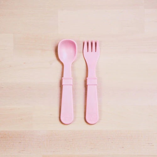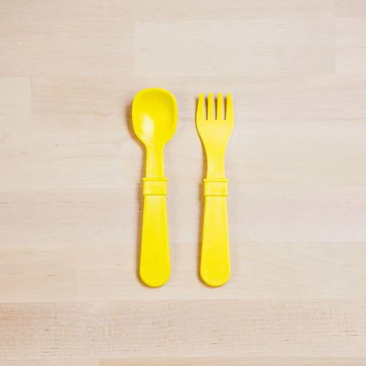 Re-Play's Utensils are designed just right for your toddler! Complete with deep scoops, rounded tips, and with pudgy handles that are easy to grip.
