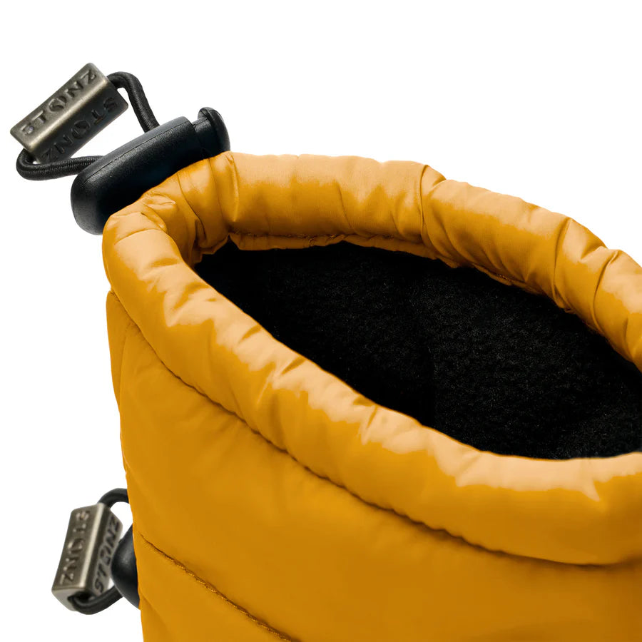 The Stonz Puffer baby booties use 3M thinsulate to keep babies cozy on cold winter days. Slips over socks, sleepers, shoes or slippers and stays on with adjustable toggles. Certified by American & Canadian Podiatric Associations for supporting healthy foot development.