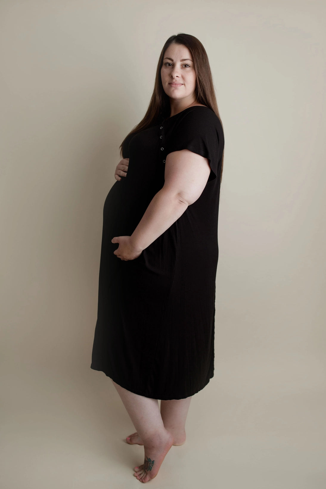Ribbed Fabric The perfect hospital gown for labor and delivery with all the functionality doctors and doulas recommend. Our gowns are stretchy, breathable and ultra-soft that will make you want to lounge in them pre and post-baby. The perfect alternative to those old hospital gowns. Designed with comfort and functionality in mind, these gowns feature easily open snaps for examinations, breastfeeding and skin-to-skin contact with you baby.