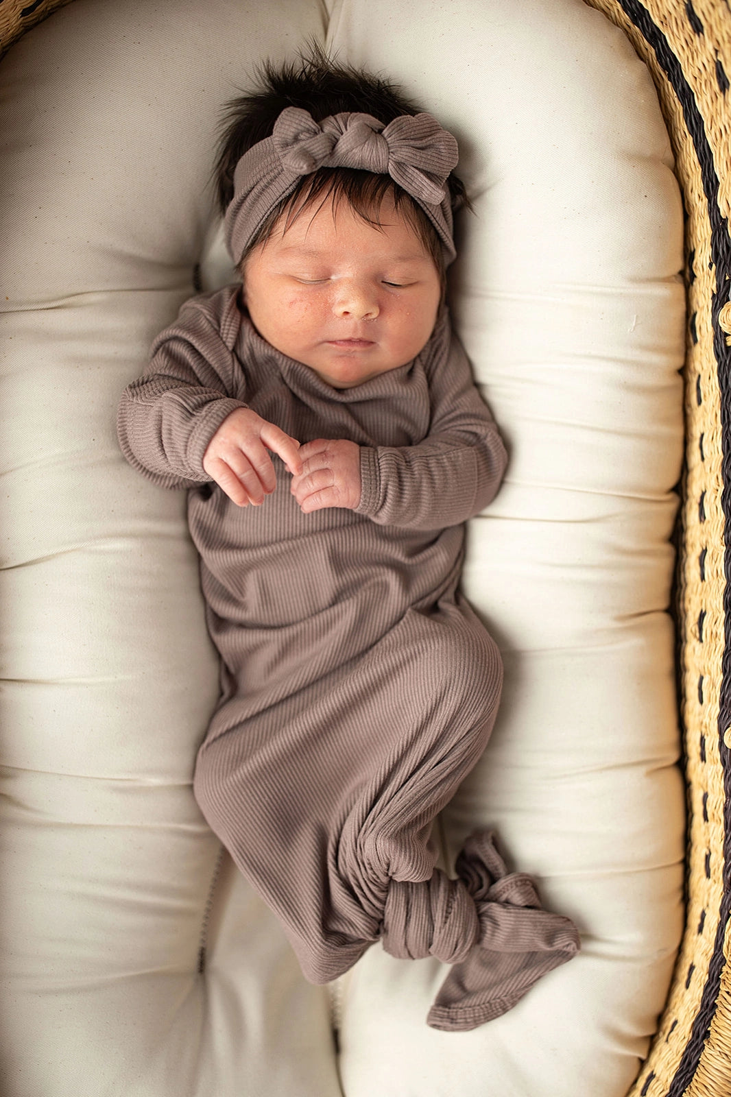 Three Little Tots - Knotted Newborn Gown - Cocoa Brown
